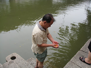 Yesterday Isabelle was not feeling well. She would not drink or eat much of anything. At about 11:30pm I woke up to find her burning up with a fever next to me (in my arm). Her temp was 104.7, gave her some Tylenol. She woke many more times through the night. Kevin and Andrew went to the mountain park with Nick and Rebecca at 9:00am. Isabelle and I stayed in the hotel all day. She finally started to feel a little better at the end of the day. We went to the Cow and Bridge for Thai food. We sat next to Bunny and family. Isabelle really came out of her shell tonight. She sat in the highchair or the first time at dinner. She chatted away in Chinese, smiling at everyone. She was so happy. At the end of dinner I handed her the rest of my rice with curry and she ate a few pieces of rice. THIS IS HUGE PROGRESS! After dinner we went to Jordan's make a few more purchases. Jordan could speak a little of the language spoken in Zhuhai (his grandfather was from there). When he would speak to her she would just light up...it was wonderful. On our way back to the hotel, Isabelle wanted to get down and walk holding my hand. THIS IS A FIRST! She has only gotten off my lap twice at Starbucks for a moment. So we are making great progress. Our airplane ride home may not be quite as easy as I had thought.